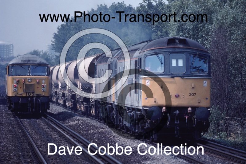 Class 33’s No.33207 Earl Mountbatten of Burma and another doublehead a freight  Nr Kensington Olympia,London on a freight – No date