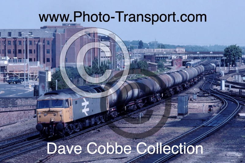 Class 47 No.47318 has just left Eastleigh Station going South West with oil tanker train  – No date
