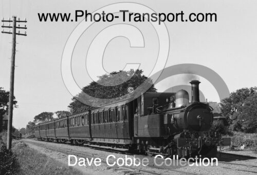 Isle of Man Railway 2-4-0T loco No.1 Sutherland hauls 6 coaches, location and date not known (nice shot) possibly 1960’s